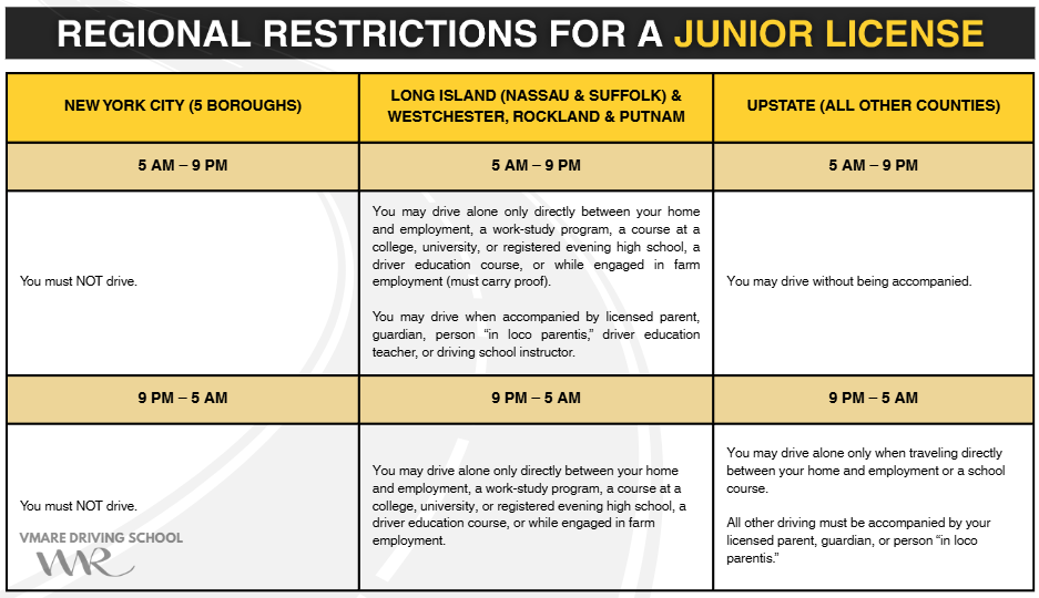 If you hold a junior license and live or drive in NYC, the rule is simple: